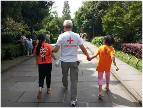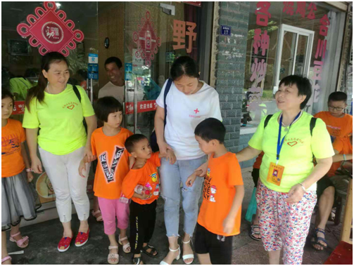 区红十字会组织10名志愿者参加活动。志愿者们带领孩子们来到邓小平故居,瞻仰了邓小平爷爷铜像、参观陈列馆,缅怀先贤,了解邓小平一生传奇,孩子们纷纷表示向小平同志学习,长大后尽力报效祖国、服务人民;志愿者们还组织了踢毽子、跳绳、甩健身球、摇呼啦圈、抓 “娃娃熊”、看电影等娱乐活动;为他们读“弟子规”、做心理辅导、梳发型,每个孩子都表示过得充实而开心,露出了天真的笑容。