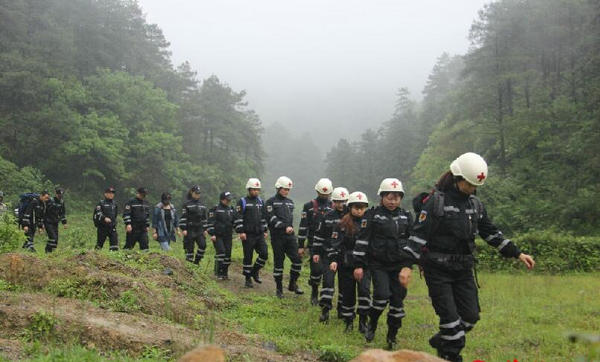 红十字志愿者救援队冒雨开展救援培训