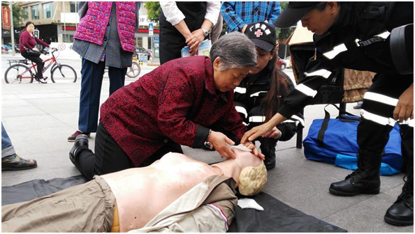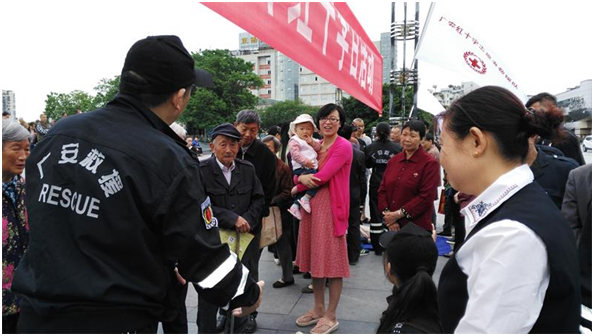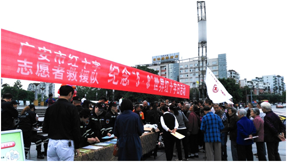 市红十字志愿者救援队在思源广场开展宣传活动