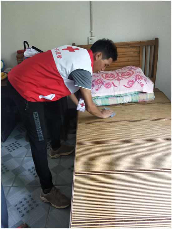邻水县红十字会开展志愿服务活动 红十字志愿者为社区老人打扫卫生 红十字志愿者为社区老人剪指甲