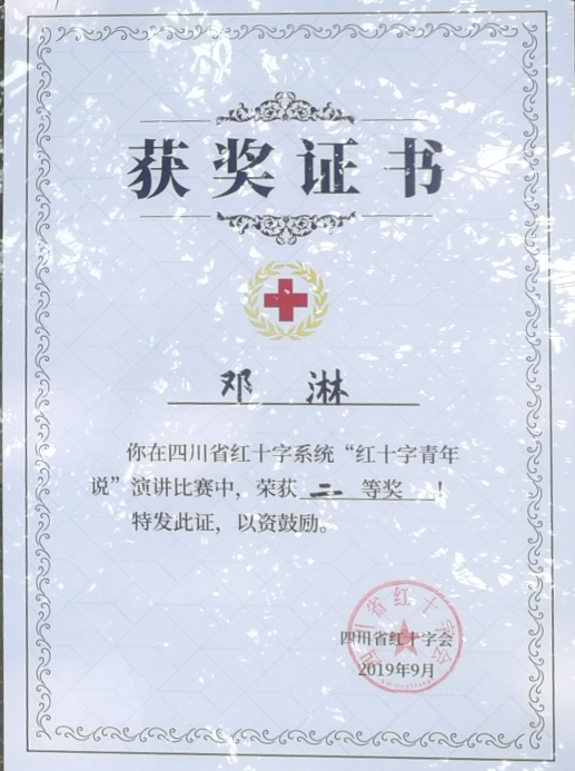 红十字志愿者邓淋荣获“红十字青年说”演讲比赛二等奖