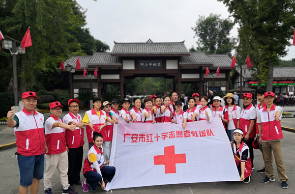 为庆祝新中国成立七十周年,市红十字志愿者救援队组织32名志愿者,到小平故里景区开展志愿服务,以实际行动献礼新中国七十华诞,祝福祖国更加繁荣富强。活动期间,不管秋阳高照,还是风雨交加,队员们每天准时到达指定岗位,热请、周到地为到来自全国各地的游客服务。