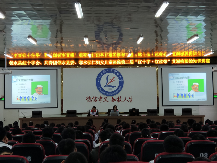 到邻水职业中学开展防艾知识专题讲座。