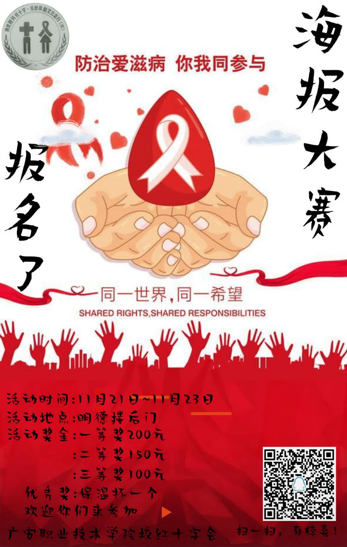 广安职业技术学院红十字会 21—23日,学院红十字会开展“防治艾滋病 你我同参与”为主题的防艾知识宣传海报大赛。