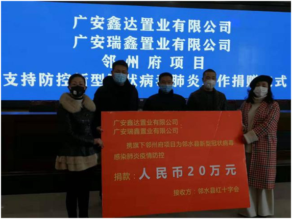 1月30日上午,邻水县红十字会在县融媒体中心九楼会议室举行捐赠仪式,接受广安鑫达置业有限公司、广安瑞鑫置业有限公司邻州府项目捐赠,捐赠资金共20万元,用于邻水县新型冠状病毒感染肺炎疫情防控工作。县红十字会会长李俊主持仪式并讲话,他代表县红十字会感谢两个企业的无私奉献和责任担当,希望社会各届以及更多的爱心企业、爱心人士,积极投入到疫情防控工作中来,同共打好打赢疫情防控阻击战。