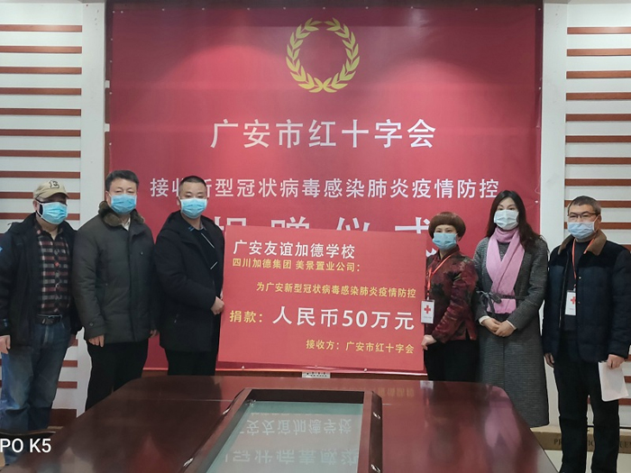 广安友谊加德学校捐资50万助力疫情防控阻击战