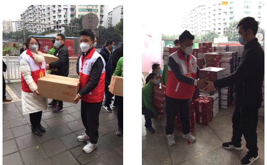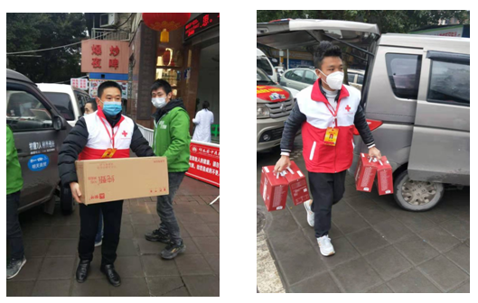 邻水县明天商贸有限公司为疫情防控工作捐赠一批牛奶 邻水县红十字志愿者为参与疫情防控的医务人员发放生活用品 邻水县红十字志愿者协助做好体温检测工作