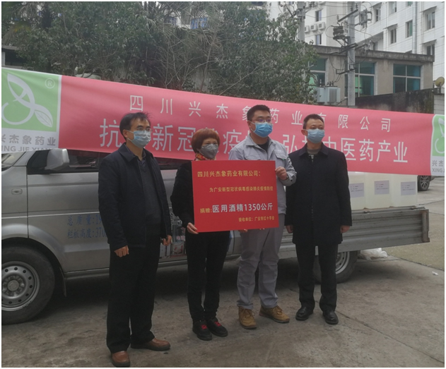 四川兴杰象药业公司捐赠医用消毒酒精助力广安疫情防控