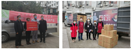 华彬快消品集团川东分公司捐赠了两批饮料,兴杰象药业送来了酒精,佛手山食品公司、广安邓家酒业为一线防控人员送来了盐皮蛋和保健品。