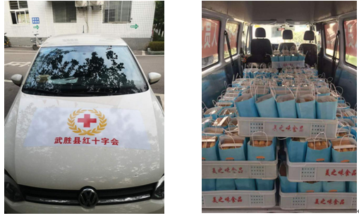 志愿者服务队为2家县级医院、32个乡镇卫生院送去牛奶。 志愿者服务队为8个集中医学观察点送去四川美之味食品有限公司捐赠的糕点。 志愿者服务队到蔬菜基地菜摘白菜、萝卜、上海青送往县城各居民小区。