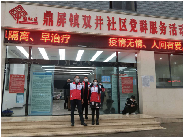 邻水县红十字志愿者、邻水县九龙镇中教师龚高田、冯琴及女儿龚柯心一家三口参加鼎屏镇双井社区疫情防控工作。