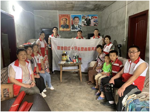 2020年7月25日岳池县红十字志愿者服务队组织志愿者到秦溪镇、团结办事组困境家庭去助学回访。对以往资助的困难学生家庭作了深入调查并为困难学生捐助了食用油、衣服、鞋子、文具、洗衣粉、蚊香、花露水等日常生活用品。