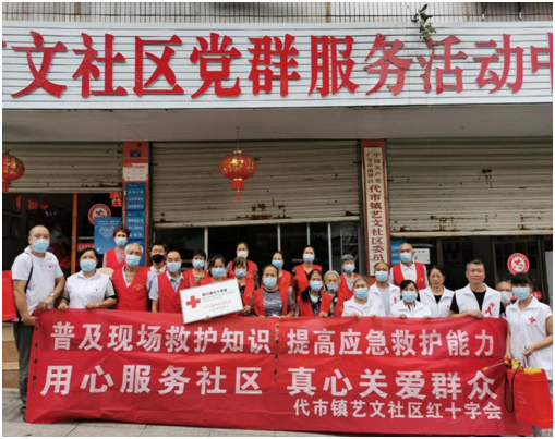 前锋区红十字会为助力社区疫情防控,打造红十字人道志愿服务特色活动平台,大力弘扬“人道、博爱、奉献”的红十字精神,多措并举在代市镇艺文社区开展社区健康促进项目。一是走访慰问受疫影响的残疾人员、退役军人、特殊家庭儿童人126人次,发放救助资金2600元,物资价值11800元;二是购买疫情防控物资、开展疫情防控,对小区进行全面消杀,共消杀70万平方米,发放防疫口罩1323个;三是组织红十字志愿者深入基层开展宣传活动,开展应急救护知识宣传培训5次,发放红十字应急救护及防疫知识9200份;四是为广大居民发放日常急救手册和应急救护包,组织老党员们学习红十字精神及应急救护知识,针对普通居民、假期中的青少年和留守儿童普及卫生救护和健康保健知识,提高他们的自救、互救能力。