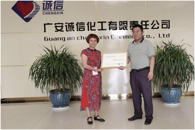 市红十字会到广安诚信化工有限责任公司送荣誉奖牌。