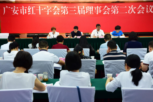 9月4日,广安市红十字会第三届理事会第二次会议在市政府九楼会议室召开。市红十字会第三届理事会35名理事参加会议。会议还邀请了不是理事的区市县(园区)、广安职业技术学院红十字会会长(副会长)、负责人及工作人员,市红十字志愿者队伍负责人,以及受表扬的优秀红十字基层组织负责人、优秀志愿者组织负责人和优秀志愿者代表。