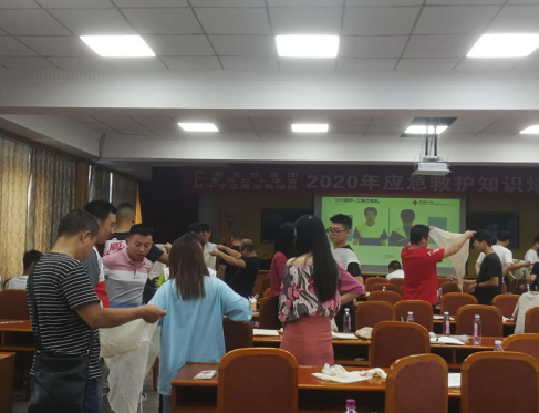 市红十字志愿者救援队 近日,市红十字会组织市红十字志愿者救援队到广安市交投集团有限公司,对公司120名员工进行急救知识和技能培训。