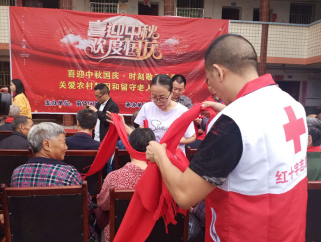 在中秋和国庆佳节即将来临之际,为让敬老院和农村留守老人过一个欢乐祥和的节日。前锋区红十字会联合区民政局、广兴镇政府、区红十字志愿者服务队、前锋区志愿者协会在这里开展主题为“喜迎中秋国庆·时刻敬老爱亲”关爱农村特困和留守老人服务”活动,来自光辉敬老院、广兴镇敬老院、广兴镇桥角村的45名老人及40多名工作人员、志愿者参加了活动。