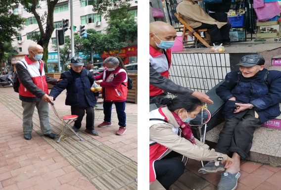 志愿者帮助行动不便老大爷