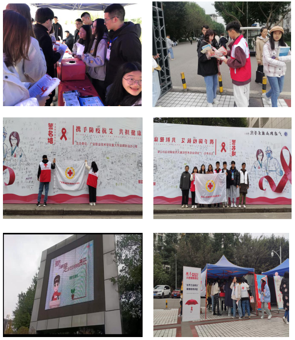 广安职业技术学院 11月30日-12月1日,广安职业技术学员红十字会在学校里开展了包括防艾知识讲座、防艾视频展播、防艾用品发送、防艾知识宣传等一系列活动。