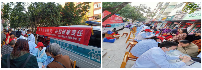 进社区开展宣传活动,为群众义诊