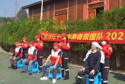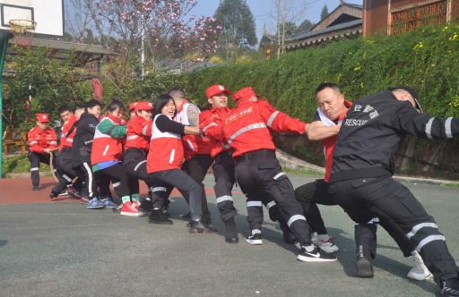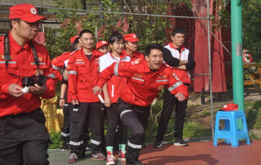 总结会前,救援队分组展示了心肺复苏、创伤包扎、搬运、山地救援绳索搭建等应急救援技能,开展了拨河、接力跑等趣味活动。