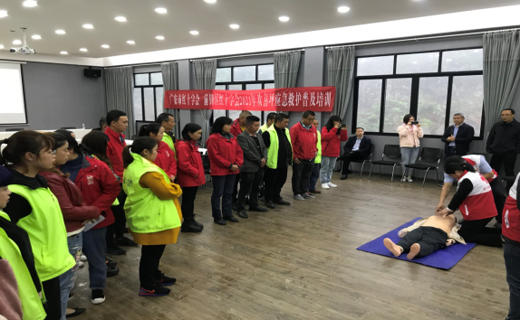 在萧家大字参观学习后,组织朱占华等4名救护师资为欢喜坪景区的40名工作人员进行了应急救护普及培训,就心肺复苏、创伤包扎和海姆立克急救法等技能向在场景区工作人员进行详细讲解和指导,受到参训者好评。