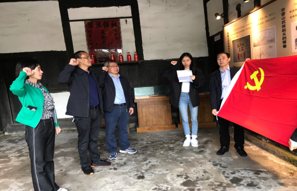 萧家大字院位于前锋区龙滩镇高岭村,有9类16个房间,是华蓥山起义队员经常活动的地方,也是市委确定的党史教育现场教学点。全体党员在萧家大院参观了党组织活动室、讲习所、秘密联络站、“七八暴动”会议陈列室等遗址,听解说员讲解了华蓥山起义的战斗历程以及王璞、杨玉枢、杨汉秀等革命前辈的传奇故事,了解和学习了萧家大院的承载的红色基因,并举行了重温入党誓词活动。
