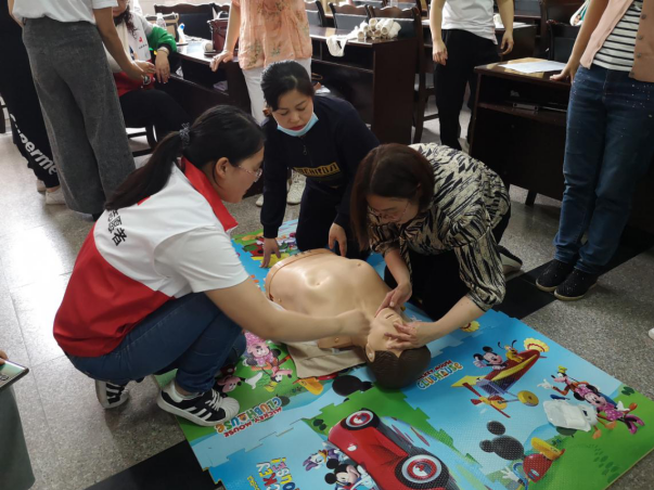 本次培训严格按要求组织开展,主要内容包含红十字运动知识、心肺复苏、止血包扎、骨折包扎、AED操作使用、海姆立克急救法等。主讲师资进行理论讲解及实操示范后分由助教再次做示范,学员逐个练习并考核。