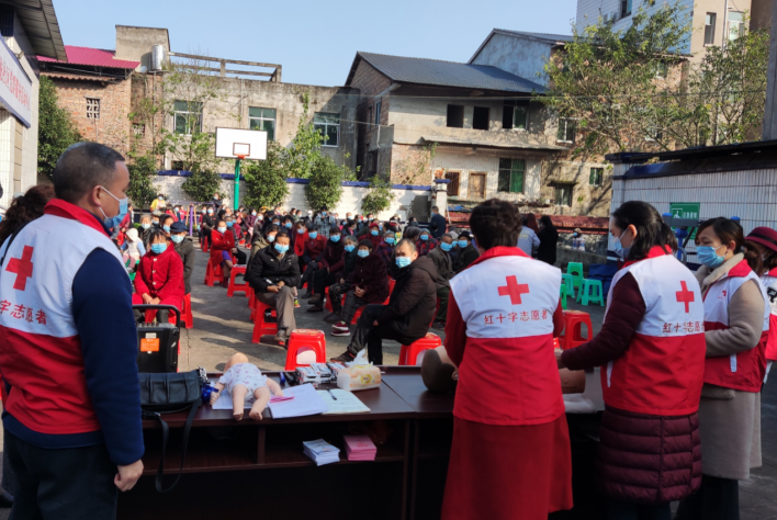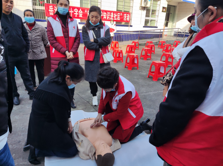 11月10日,岳池县红十字会“应急救护知识进社区活动”走进酉溪镇恐龙社区,60余名社区居民及工作人员参加。