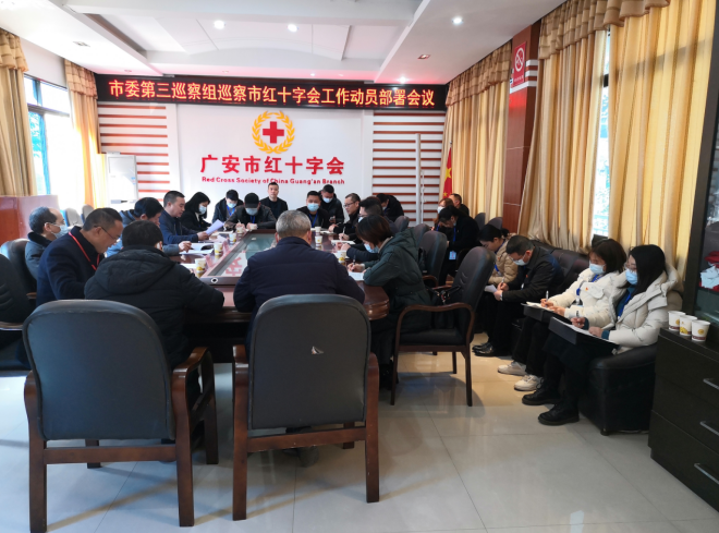 根据市委关于巡察工作的统一部署,2022年2月25日,六届市委第一轮市委第三巡察组巡察市红十字会工作动员会召开。会前,巡察组组长祝松林主持召开与市红十字会单位党组织主要负责人李华的见面沟通会。动员会上,市委第三巡察组组长祝松林通报了巡察任务和工作安排,就巡察工作提出了要求,市纪委副书记、市监委副主任、市委巡察工作领导小组成员刘勇传达六届市委第一轮巡察工作动员部署暨巡察指导督导工作专题培训会议精神,对做好本轮巡察工作提出了三点意见,市红十字会副会长、机关支部书记书记李华主持会议并作表态发言。