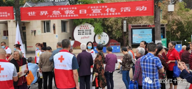 9月9日,广安市、区红十字会联合在北辰湖广场开展“世界急救日”宣传活动。以宣传资料发放、现场咨询、应急救护技能演示等方式,向广大市民进行了自救互救常识的科普宣传。同时,组织广安区浓洄社区卫生服务中心开展现场义诊活动。医务人员通过给群众测量血压,测试血糖,讲解饮食安全、合理用药、关于常见病、多发病的预防诊治及愈后疑难问题等卫生保健知识,宣传疫情防控知识。