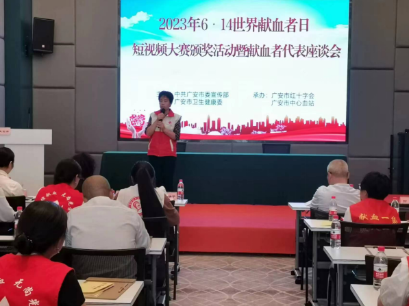 “捐献热血,拯救生命”,6月9日,广安市6.14世界献血者日短视频大赛颁奖活动暨献血者代表座谈会顺利召开。市委宣传部、市卫生健康委、市红十字会有关领导出席会议,献血者和志愿者代表以及市中心血站相关人员共计90余人参加会议,市中心血站党支部书记、主任文净平主持会议。