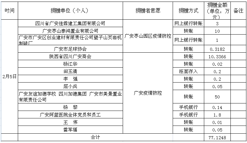 广安市红十字会新型冠状病毒疫情防控捐赠款物公告第7期