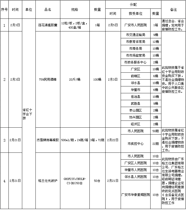 广安市红十字会新型冠状病毒疫情防控捐赠款物使用公告第11期