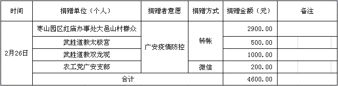 接受社会捐款已到账资金一览表(统计时间段:2月21日17时-2月26日17时)