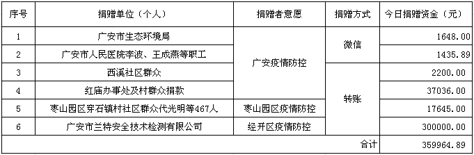广安市红十字会新型冠状病毒疫情防控捐赠款物公告第30期